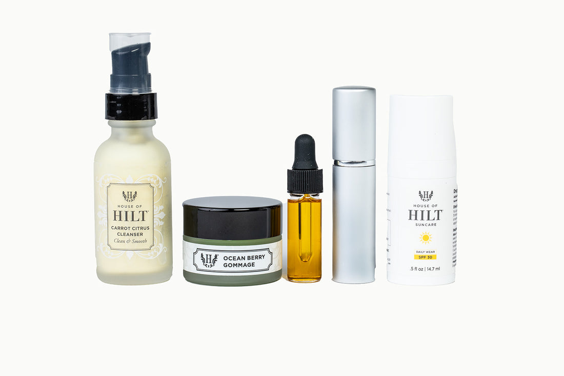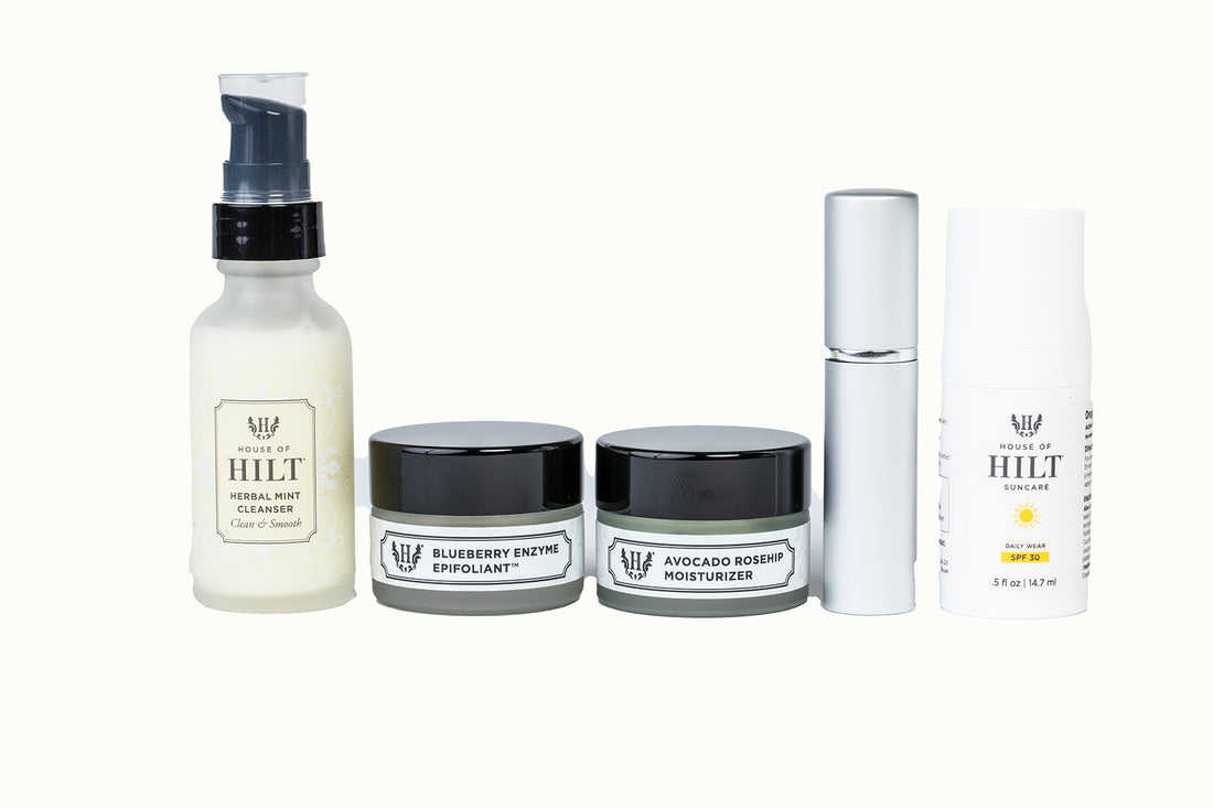 House of Hilt Dehydrated Skincare Herbal Mint Cleanser, Firming Peptide Serum, Ocean Berry Gommage, Avocado Rosehip Moisturizer